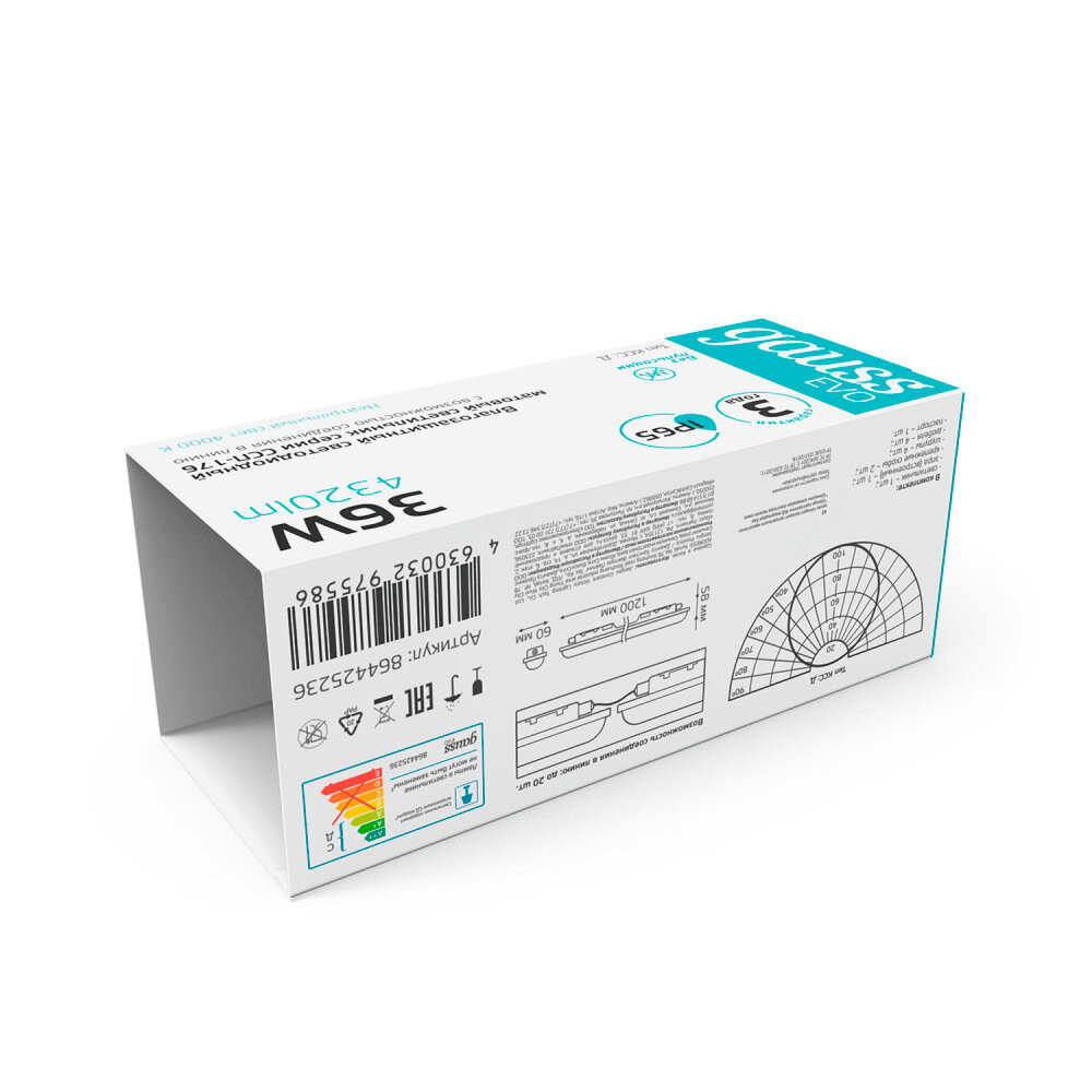 Светильник промышленный линейный ДСП 36 Вт 4320 лм 4000К AC 220В IP65 1200х58х60мм ССП-176 матовый сквозная проводка соеденяется в линию EVO Gauss (GAUSS) 864425236