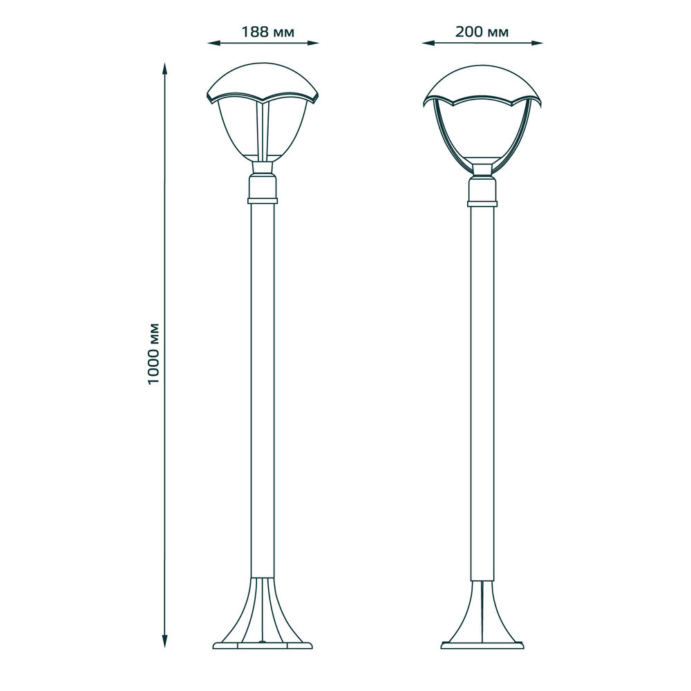 Светильник садово-парковый столб НТУ 1хE27 AC 220В Черный IP54 200х200х1000мм Алюминий max 60Вт ландшафтный Aura (GAUSS) GD030