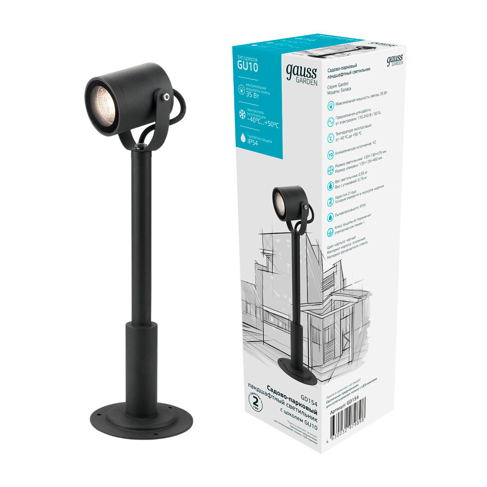 Полное описание товара Светильник садово-парковый столб НТУ 1хGU10 AC 220В Черный IP54 90х90х475мм Алюминий ландшафтный Sonata (GAUSS) GD154