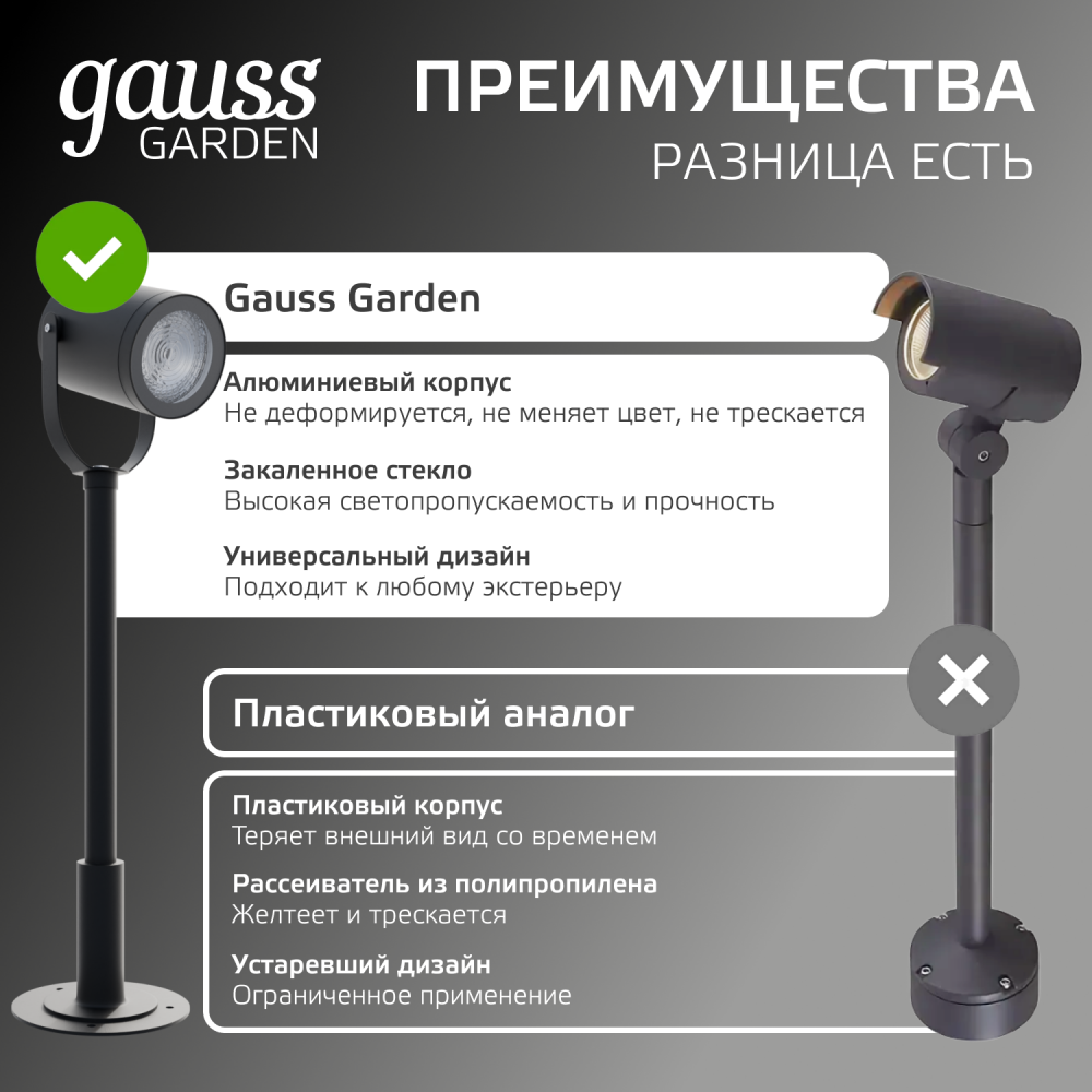 Сделайте участок своего загородного дома особенным вместе с ландшафтным светильником Gauss Sonata! Такой светильник прекрасно справится с художественной подсветкой фасадов зданий, колонн, ниш, в ландшафтном освещении для подсветки кустов и деревьев. За счет направленного свечения светильника можно выгодно выделить определенные архитектурные элементы. Специальная скоба, на которой закреплен светильник, позволяет изменять угол подсветки. Высокая пыле и влагонепроницаемость IP54, а также рассеиватель из прочного пластика позволит использовать светильник на открытых пространствах. Такие светильники Sonata способны работать в любой сезон при высоких и низких температурах в диапазоне от -40 до +50 градусов. Садово-парковые настенные светильники серии Sonata станут незаменимой частью неповторимого стиля вашего пространства.