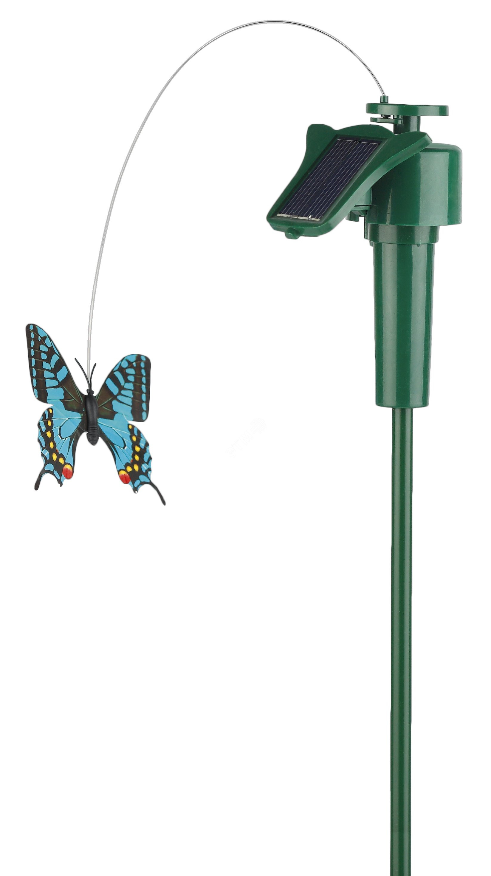 Садово-парковая декоративная композиция SL-PL42-BTF ''Порхающая бабочка'' станет необычным украшением Вашей дачной территории. Декоративная фигурка подойдет для размещения в клумбе, кустарниках или при входе в террасу. Модель имеет высоту в 42 см и без труда вставляется в землю. Функционирует на солнечной батарее. Такой способ получения энергии является самым экологичным, энергоемким, а также бесшумным. Питание происходит во включенном режиме, днем. Светящийся элемент отсутствует, так как главная особенность декора - это цветная бабочка на тонкой проволоке, эффектно ''летающая'' вокруг основания. Высокий уровень пыле и влагозащиты позволяет оставлять композицию на улице даже во время дождя. Обращаем Ваше внимание, что перед использованием фигурки ее необходимо включить и зарядить. Заряжается в течение всего светового дня.