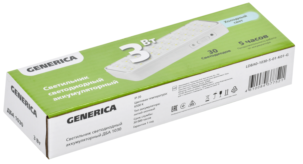 Полное описание товара Светильник светодиодный аккумуляторный ДБА 1030 непостоянного действия 30LED 5ч 3 Вт GENERICA (IEK) LDBA0-1030-5-01-K01-G