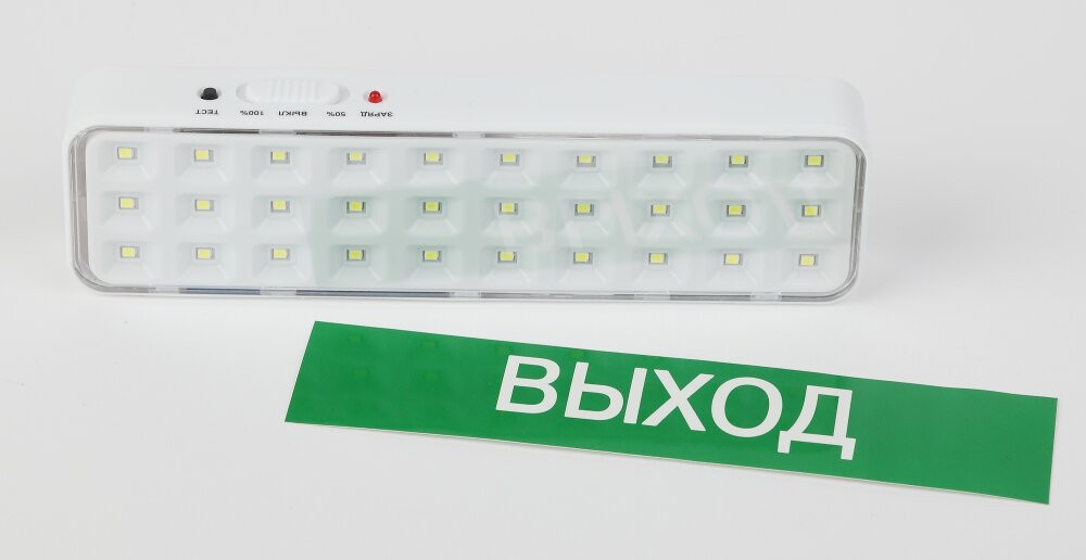 Светильник аварийный светодиодный. Область применения: Предназначен для освещения путей эвакуации, коридоров, проходов, запасных дверей, как эвакуационные или указательные светильники (при наличии пиктограмм)., 2 режима работы, время автономной работы 300 минут, наличие кнопки `ТЕСТ` для проверки работы в аварийном режиме. Гарантия:2 года. Диапазон рабочих температур:(+1+35). Класс энергоэффективности:A. Климатическое исполнение:УХЛ4. Преимущества:2 режима работы, время автономной работы 300 минут, наличие кнопки `ТЕСТ` для проверки работы в аварийном режиме, наклейка `ВЫХОД` в комплекте. Цветовая температура:6500K. Материал корпуса: пластик. Габариты: 202x56x30мм. Потребляемая мощность:3Вт. Степень защиты от окружающей среды:IP20. Тип рассеивателя: прозрачный. Тип кривой: Д. Питающее напряжение светильника:230Вт.