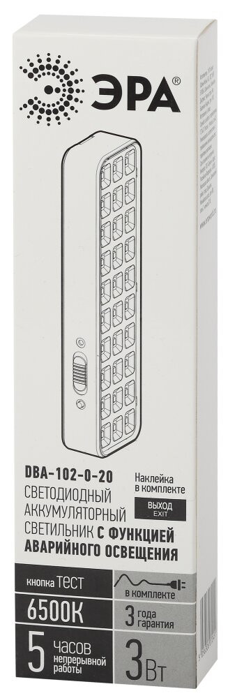 Полное описание товара Светильник светодиодный аварийный непостоянный DBA-102-0-20 30LED 5ч IP20 выход 40/1920 (ЭРА) Б0044395