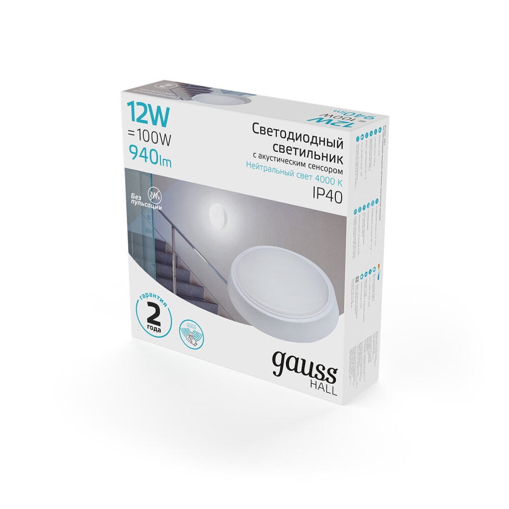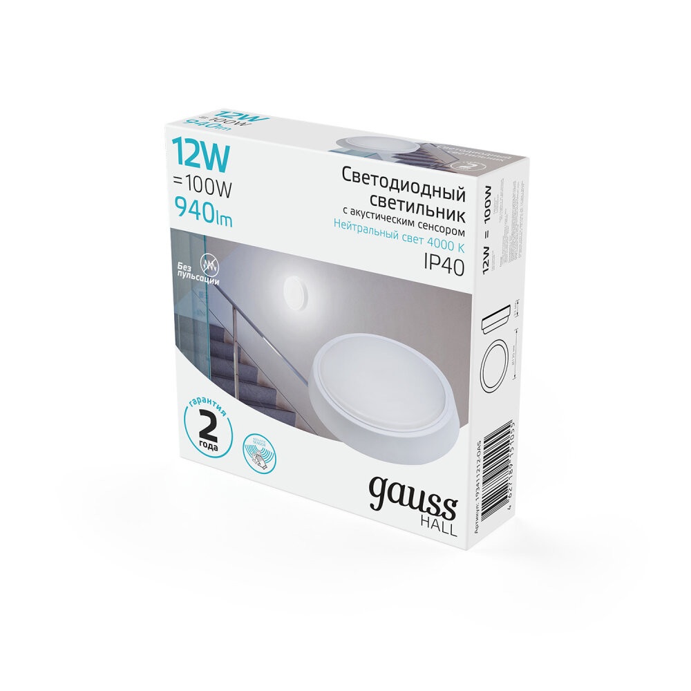 Полное описание товара Светильник светодиодный ДБП 12 Вт 940 лм 4000К AC 220В Белый IP40 круг D135х33мм Пластик ЖКХ с оптико-акустическим датчиком HALL (GAUSS) 193411212-OAS