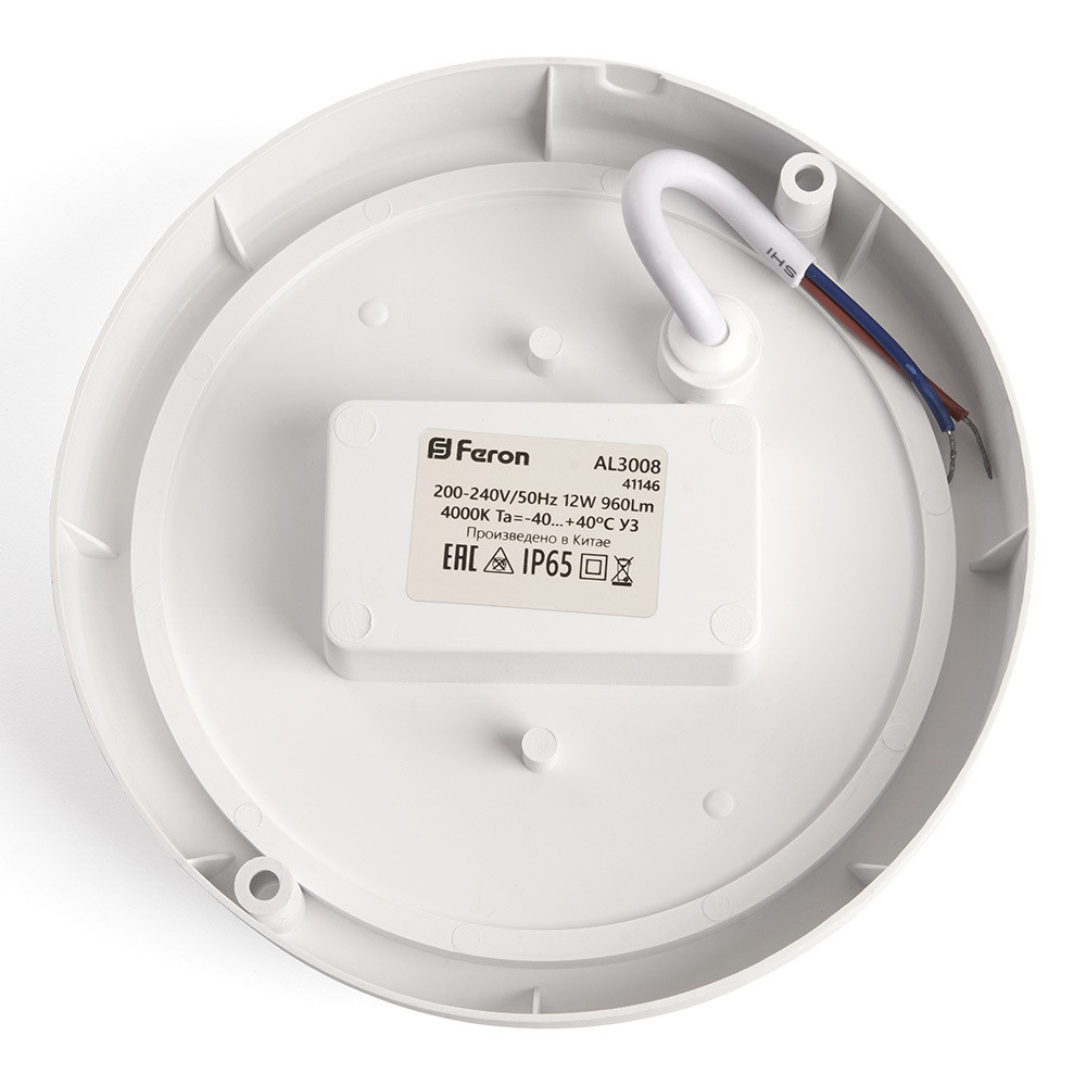 Полное описание товара Светильник светодиодный ДБП-12w с оптико-акустическим датчиком 4000К 960Лм IP65 круглый белый (FERON) AL3008 41146