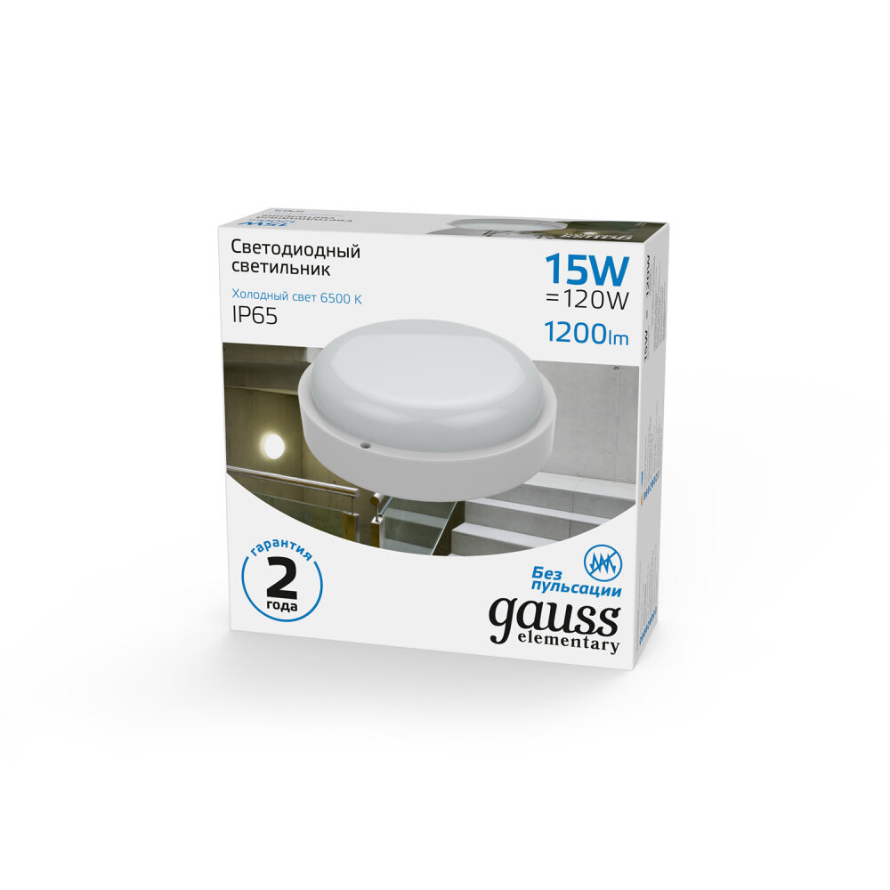 Полное описание товара Светильник светодиодный ДБП 15 Вт 1200 Лм 6500К AC 220В белый IP65 круг D140х140 мм пластик ЖКХ Elementary (GAUSS) 126411315