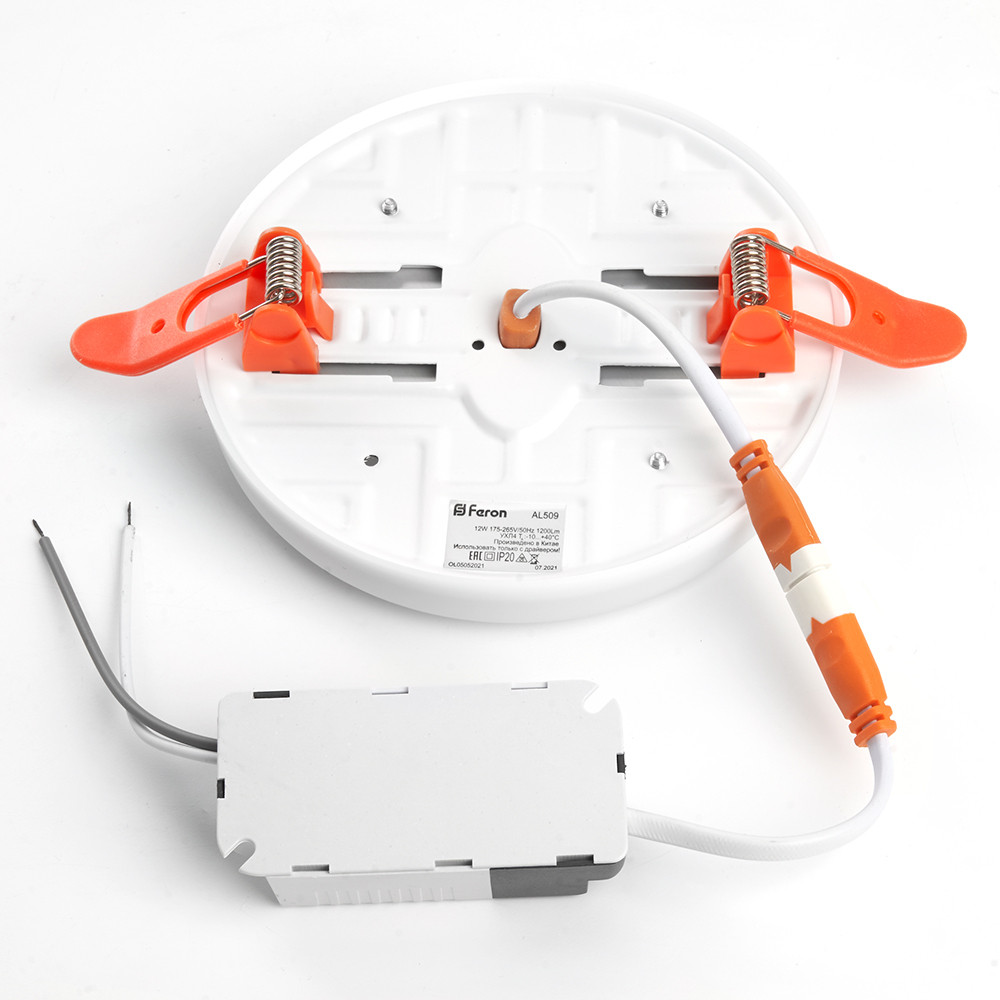 Светильник светодиодный ДВО-12w 4000К 1200Лм slim белый с регулируемым монтажным диаметром (до 90мм) (FERON) AL509 41208