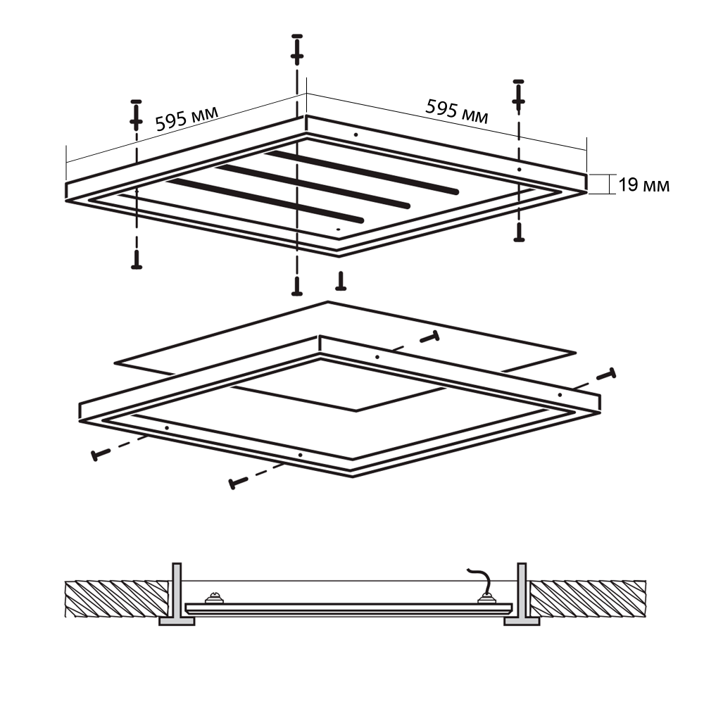 Полное описание товара Светильник светодиодный ДВО-36w 6500K 595х595 3600Лм с БАП IP40 (JazzWay) 5050082