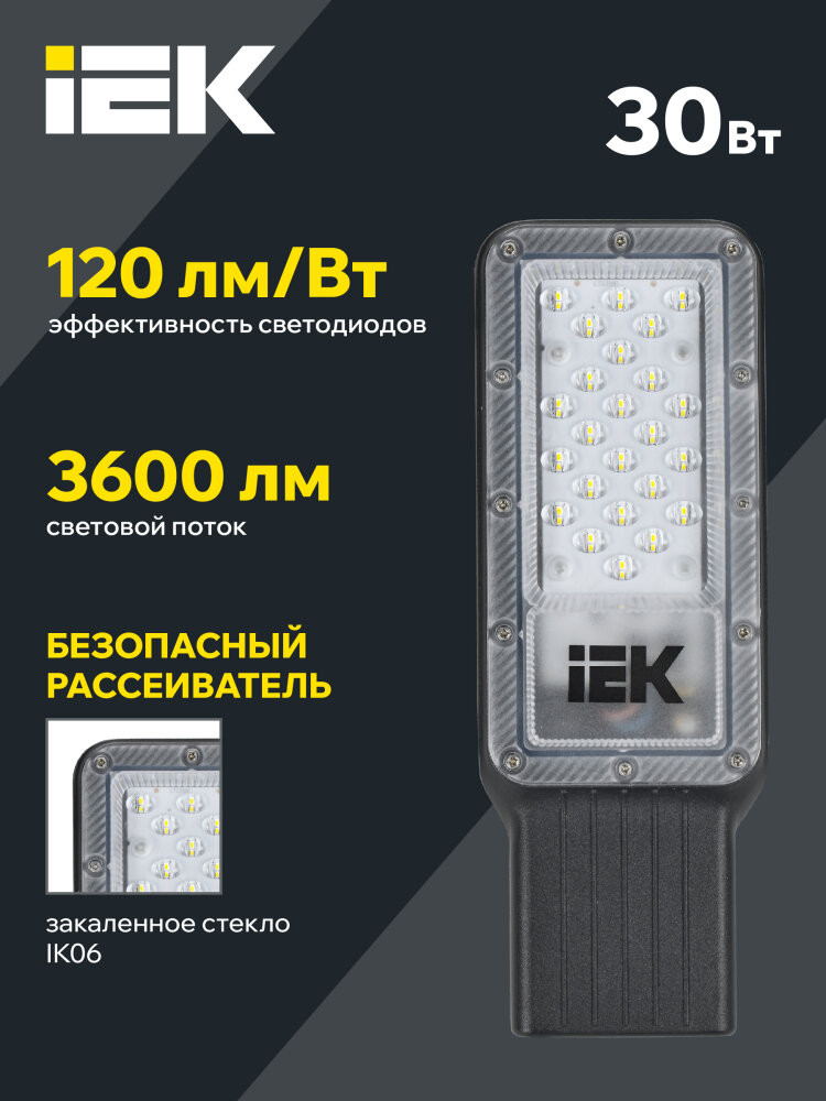 Полное описание товара Светильник светодиодный консольный ДКУ 1011-30Ш 5000К IP65 (IEK) LT-DKU1-1011-030-50-K03
