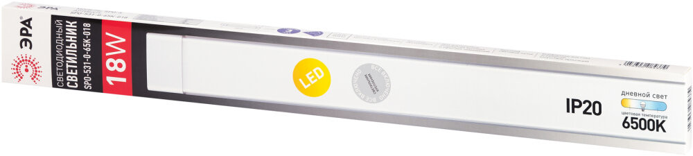 Полное описание товара Светильник светодиодный линейный SPO-531-0-65K-018 IP20, 0,6 м, 18 Вт, 6500К, опал (20/720) (ЭРА) Б0045365