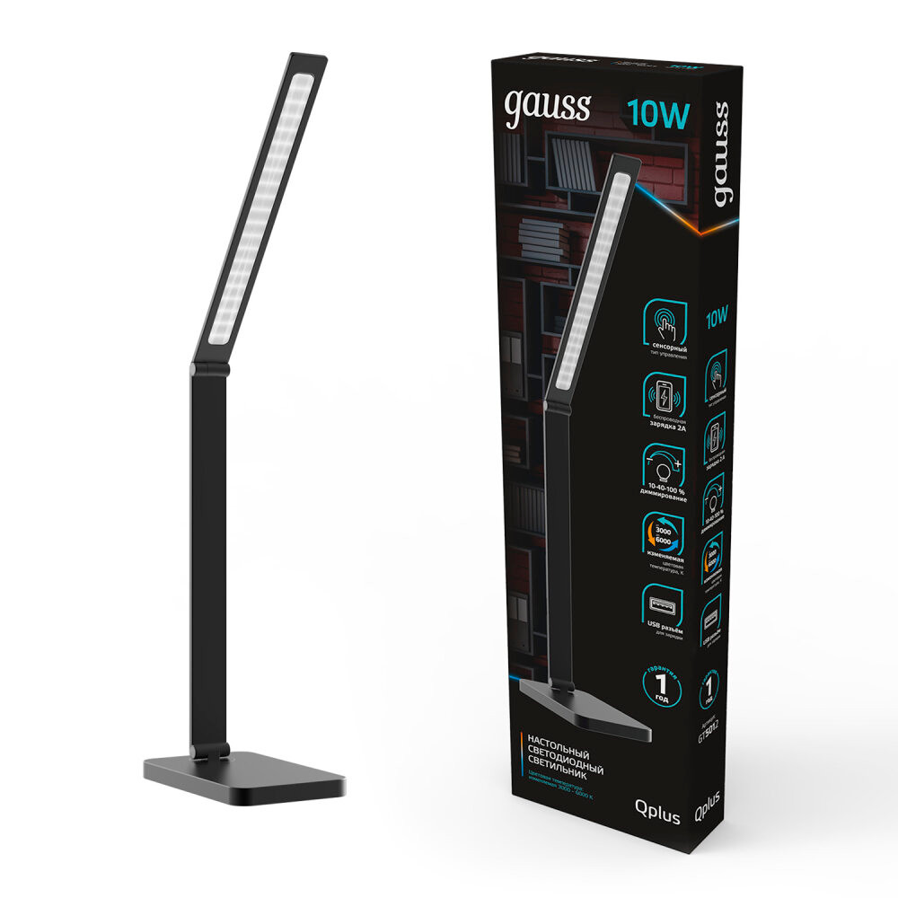 Светильник светодиодный настольный 10 Вт 600 лм 3000-6000К AC 220В Черный IP20 Металл, пластик складная стойка сенсорное управление яркости и температуры освещения беспроводная и USB зарядка телефона Qplus Gauss (GAUSS) GT5012