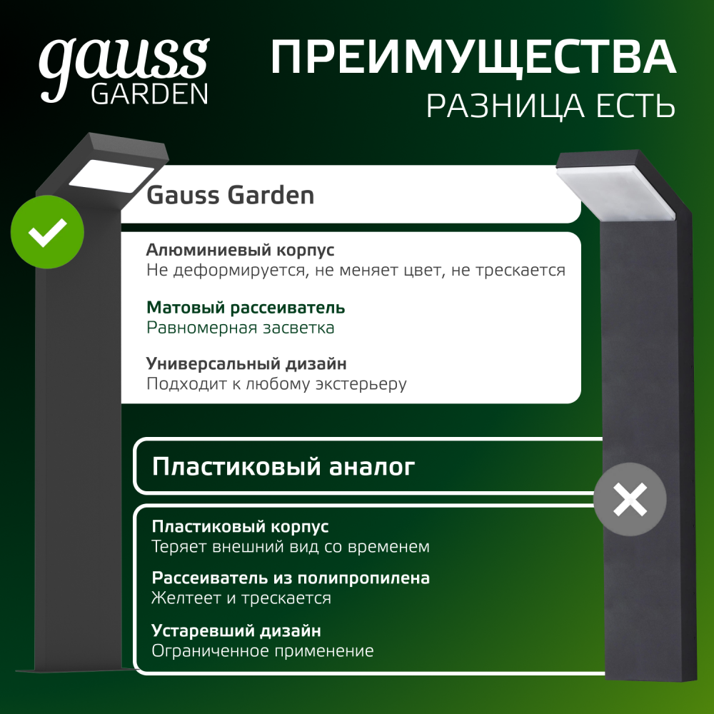 Садово-парковый светильник Gauss серии Sigma гармонично дополнит дизайн вашего интерьера загородного дома. Разработаны такие светильники по новейшим технологиям с применением лучших материалов - алюминиевого корпуса с высокой пыле- и влагозащитой IP54, что позволяет светильнику эффективно работать в любой сезон, даже при -40 до +50 градусов. Светильники серии Sigma предназначены для общего и декоративного освещения. Безупречное исполнение и качественная сборка позволяют устанавливать светильники на придомовых территориях, фасадов зданий, террас ресторанов и кафе. Такие светильники Gauss имеют два источника света, направленных в разные стороны с цоколем GU10. Используйте садово-парковые светильники Gauss серии Sigma для создания неповторимого уютного стиля вашей придомовой территории.