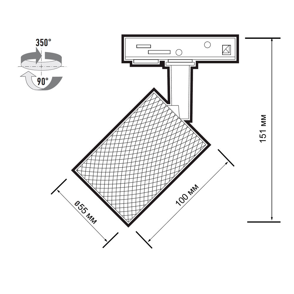 Полное описание товара Светильник светодиодный трековый на шинопровод до 50W ДПО-50Вт белый под лампу GU10 (JazzWay) 5049246