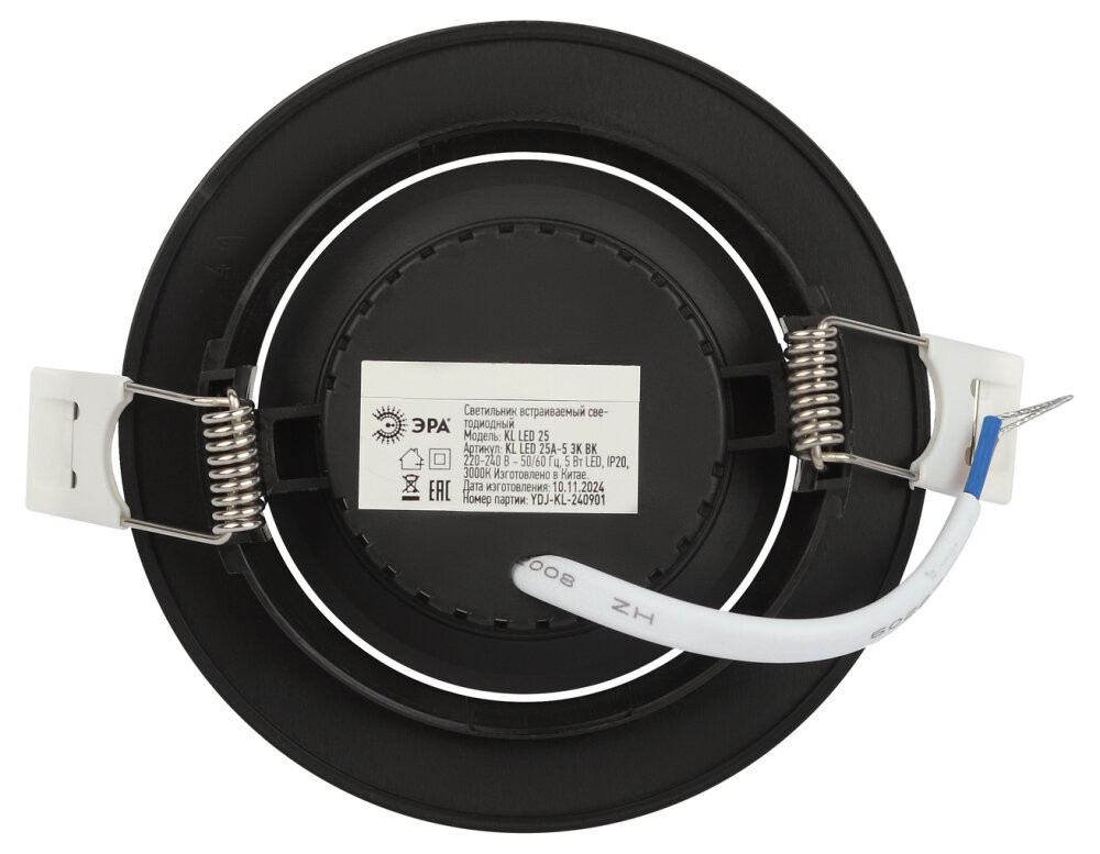 Светильник светодиодный встраиваемый ЭРА KL LED 25A-5 3K BK круглый поворотный черный 5Вт 3000К - Характеристики
