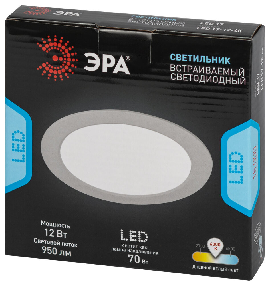 Полное описание товара Светильник светодиодный встраиваемый LED 17-12-4K круглый 12Вт 4000К (ЭРА) Б0057439