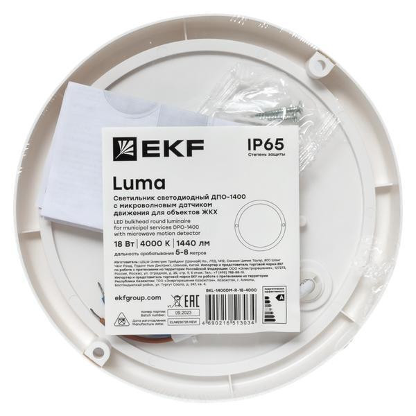 Полное описание товара Светильник светодиодный ЖКХ круг ДПО-1400 с микроволновым датчиком движения 18Вт 6500K IP65 LUMA (EKF) BKL-1400DM-R-18-6500