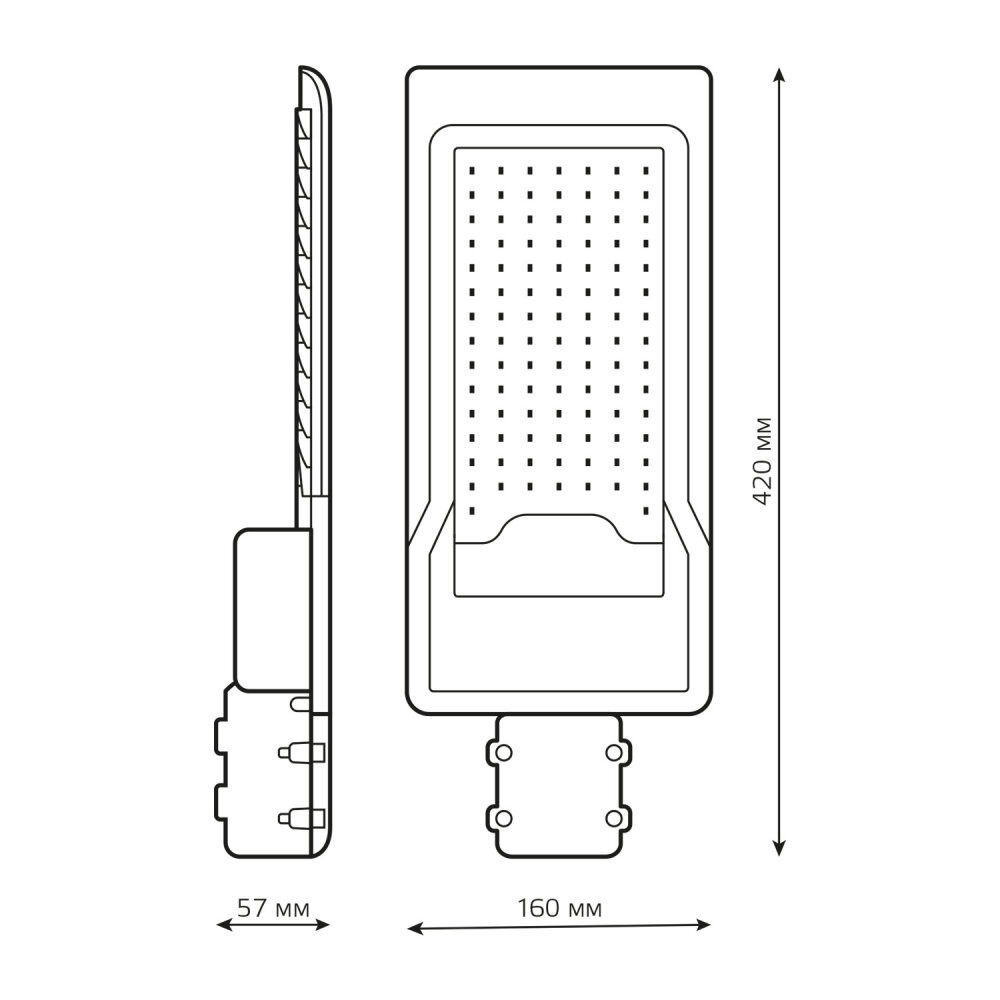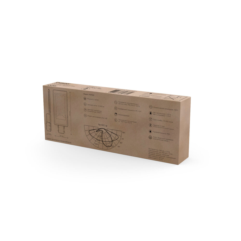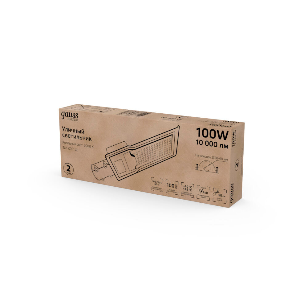 Полное описание товара Светильник уличный консольный ДКУ 100 Вт 10000 лм 5000К AC 220В IP65 420х160х57мм широкая КСС Ш Avenue (GAUSS) 629534300