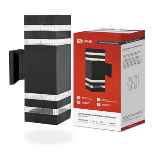 Полное описание товара Светильник уличный настенный двусторонний НБУ POLO-S-2хA60-BL алюминиевый черный IP54 IN HOME (IN-HOME) 4690612037950
