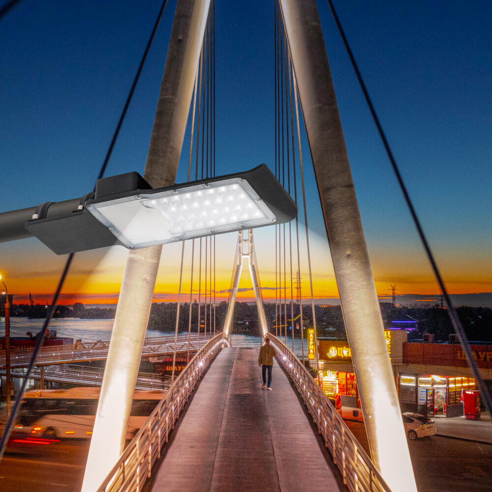 Светильник для Освещения автостоянок, площадей, парков, коттеджных поселков, железнодорожных платформ и станций, мостов, территорий дворов, школ, пешеходных и велодорожек.. Гарантия 3 года. Индекс цветопередачи Ra>70. Диапазон рабочих температур -45 +40. Класс светораспределения П. Тип кривой КСС `Ш-с`, защита от импульсных помех>4000В, диапазон раб. напр. 170-260В. Материал корпуса Алюминий. Класс защиты I. Степень защиты от окружающей среды IP65. Светоотдача 100Лм/Вт. Питающее напряжение 190-255В.