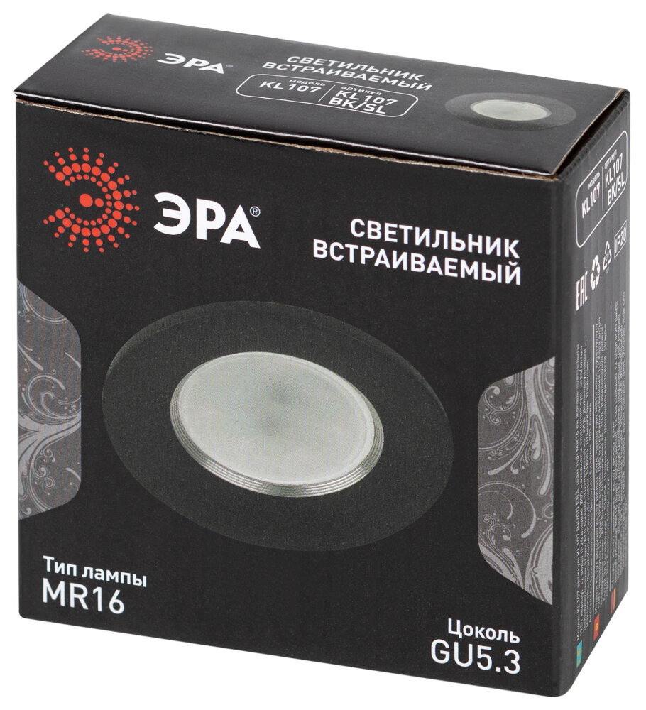 Полное описание товара Светильник встраиваемый алюминиевый KL107 BK/SL MR16 GU5.3 черный серебро (ЭРА) Б0061098