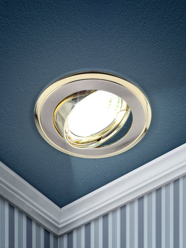 Светильник встраиваемый литой поворотный двойной контур MR16 KL22 А SN/G ,12V/220V, 50W сатин никель/золото (100/ (ЭРА) C0043708