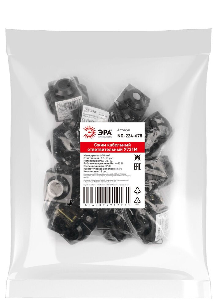 Полное описание товара Сжим ответвительный кабельный У731М 4-10/1.5-10 мм2 NO-224-678 IP20 (ЭРА) Б0067843