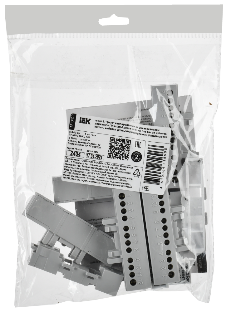 Полное описание товара TEKFOR Шина L фаза изолированная на универсальном держателе 6х9-12-Ср IEK (IEK) TF-NN10-12-KL-K03