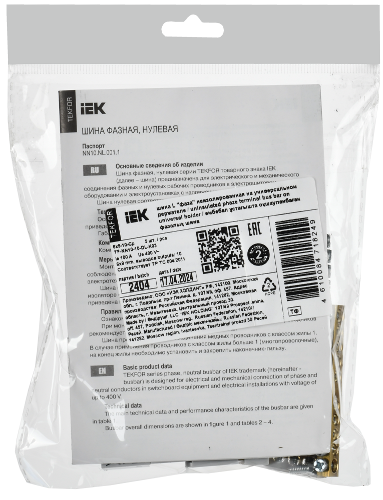 TEKFOR Шина L фаза неизолированная на универсальном держателе 6х9-10-Ср IEK (IEK) TF-NN10-10-DL-K03
