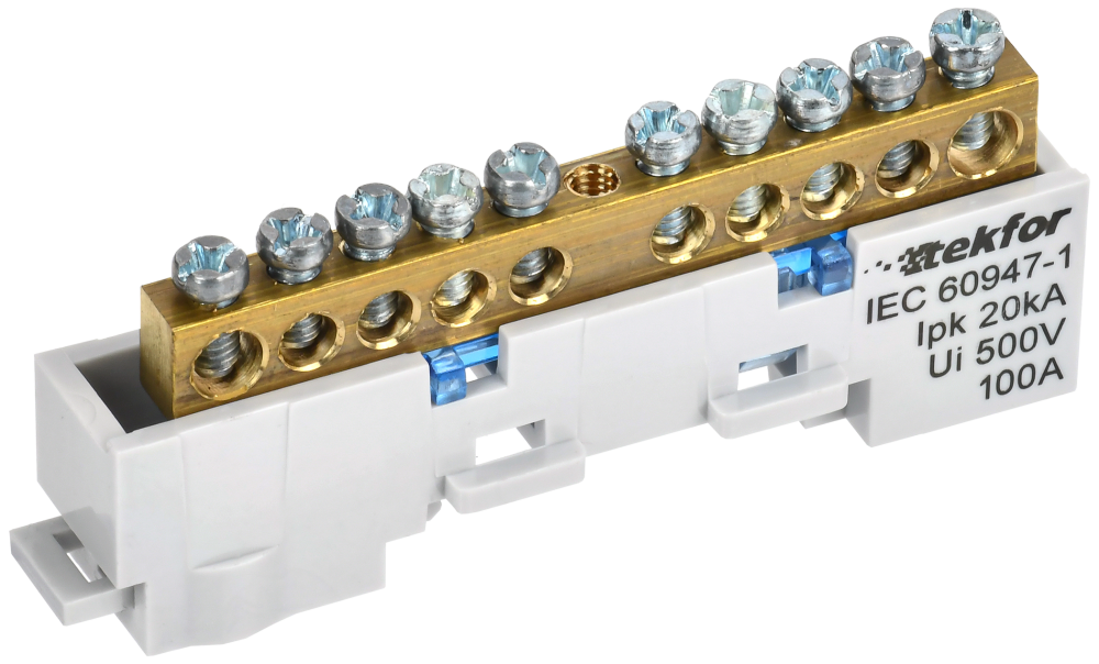 - Преимущества: Удобная сборно-разборная конструкция|Универсальный держатель шины с вариантами установки как на DIN-рейку, так и на плоскую поверхность|Индикация назначения шины выполнена цветной вставкой
