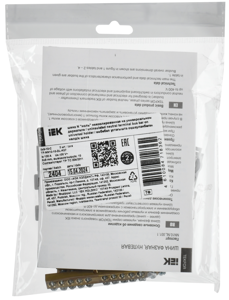 Полное описание товара TEKFOR Шина N ноль неизолированная на универсальном держателе 6х9-10-С IEK (IEK) TF-NN10-10-DL-K07