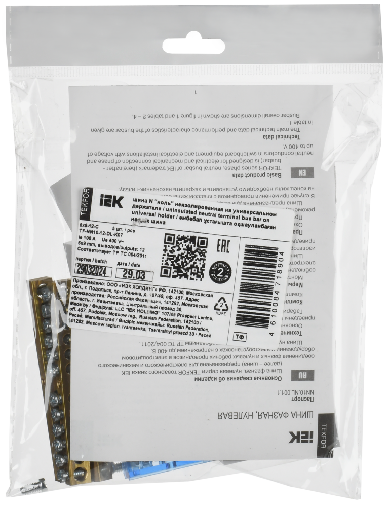Полное описание товара TEKFOR Шина N ноль неизолированная на универсальном держателе 6х9-12-С IEK (IEK) TF-NN10-12-DL-K07