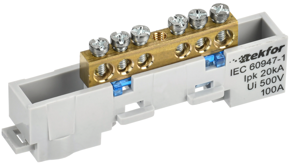 - Преимущества: Удобная сборно-разборная конструкция|Универсальный держатель шины с вариантами установки как на DIN-рейку, так и на плоскую поверхность|Индикация назначения шины выполнена цветной вставкой