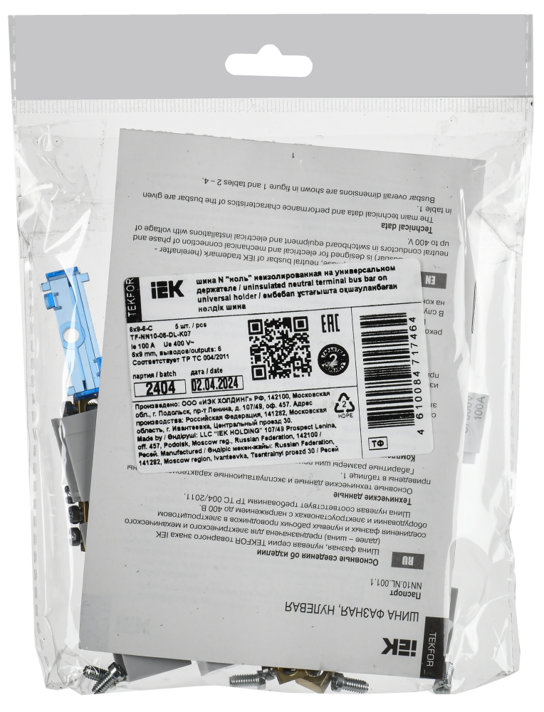 Полное описание товара TEKFOR Шина N ноль неизолированная на универсальном держателе 6х9-6-С IEK (IEK) TF-NN10-06-DL-K07