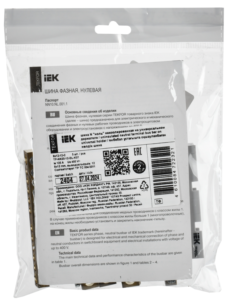 Полное описание товара TEKFOR Шина N ноль неизолированная на универсальном держателе 8х12-12-С IEK (IEK) TF-NN20-12-DL-K07