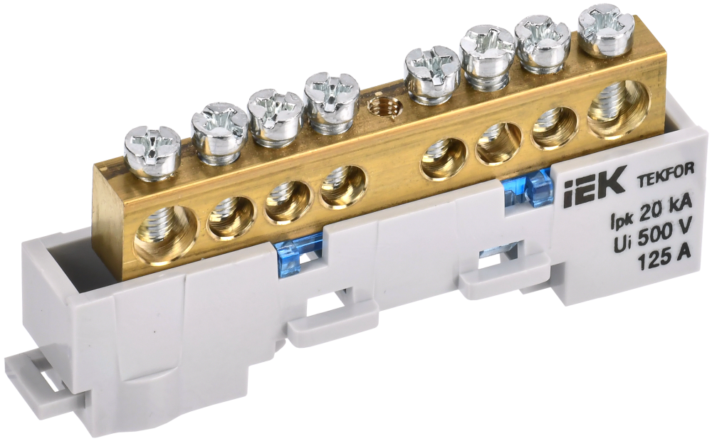 - Преимущества: Удобная сборно-разборная конструкция|Универсальный держатель шины с вариантами установки как на DIN-рейку, так и на плоскую поверхность|Индикация назначения шины выполнена цветной вставкой