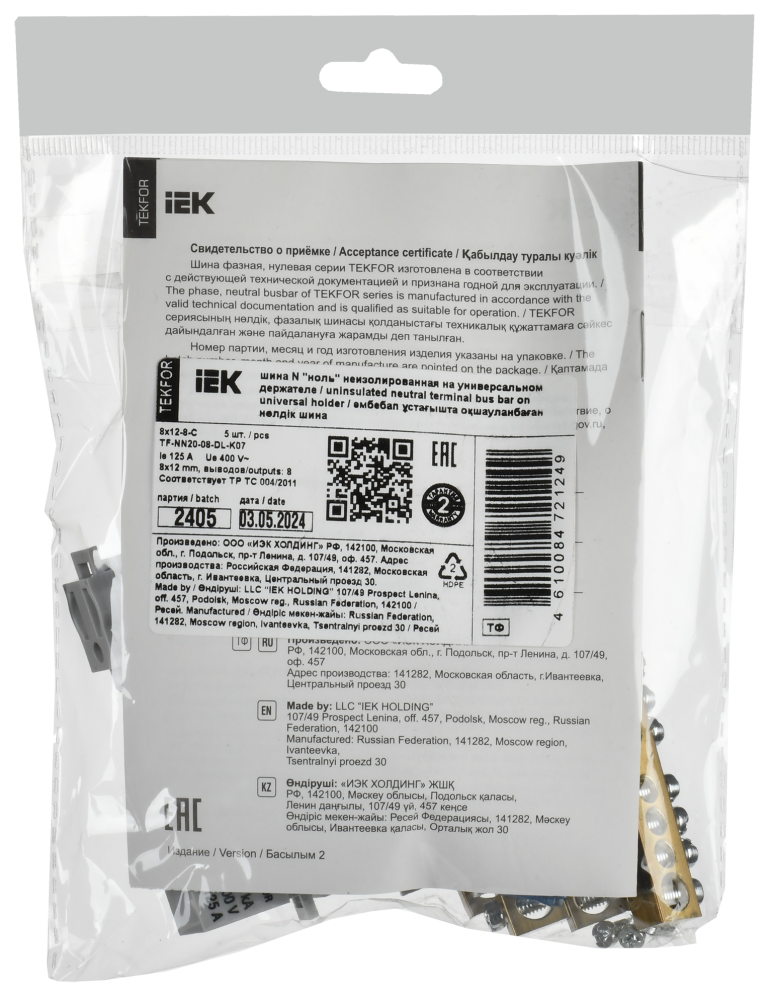 Полное описание товара TEKFOR Шина N ноль неизолированная на универсальном держателе 8х12-8-С IEK (IEK) TF-NN20-08-DL-K07