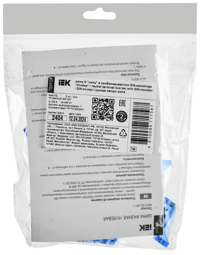Полное описание товара TEKFOR Шина N ноль в комбинированном DIN-изоляторе Стойка 6х9-7-С IEK (IEK) TF-NN10-07-DP-K07