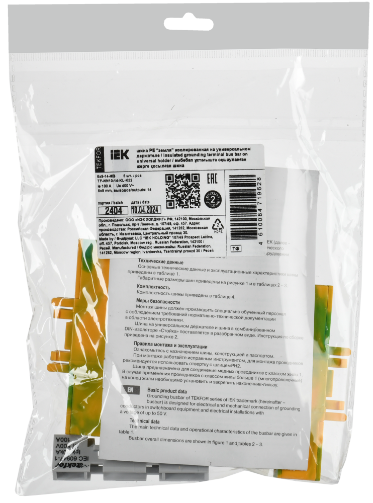 Полное описание товара TEKFOR Шина PE земля изол на универсальном держателе 6х9-14-ЖЗ IEK (IEK) TF-NN10-14-KL-K52