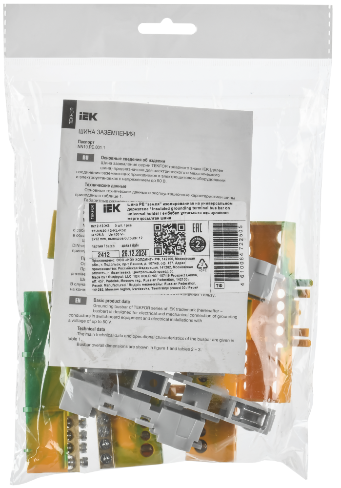 Полное описание товара TEKFOR Шина PE земля изолированная на универсальном держателе 8х12-12-ЖЗ IEK (IEK) TF-NN20-12-KL-K52