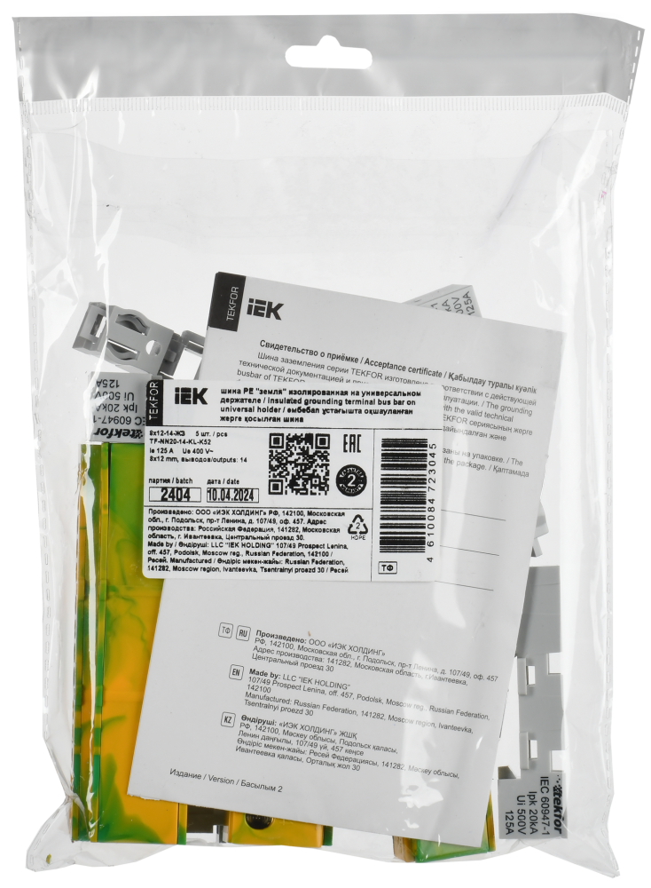 Полное описание товара TEKFOR Шина PE земля изолированная на универсальном держателе 8х12-14-ЖЗ IEK (IEK) TF-NN20-14-KL-K52
