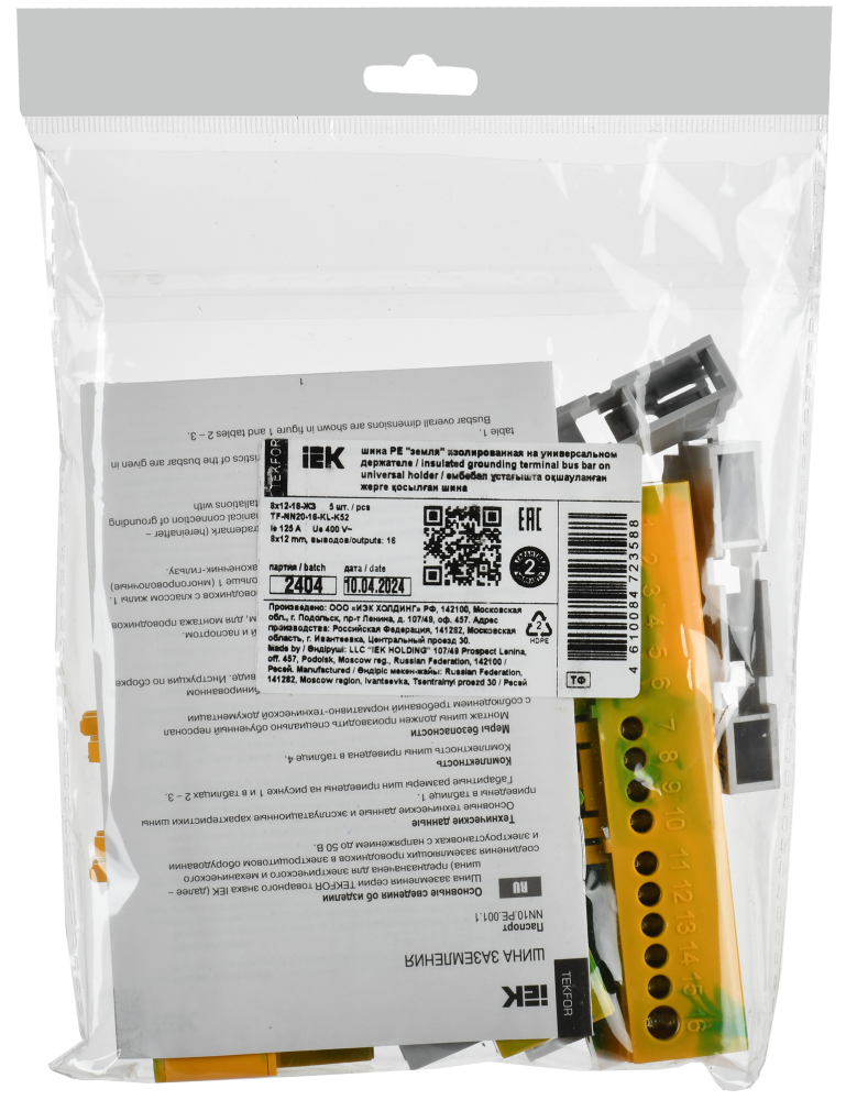 Полное описание товара TEKFOR Шина PE земля изолированная на универсальном держателе 8х12-16-ЖЗ IEK (IEK) TF-NN20-16-KL-K52