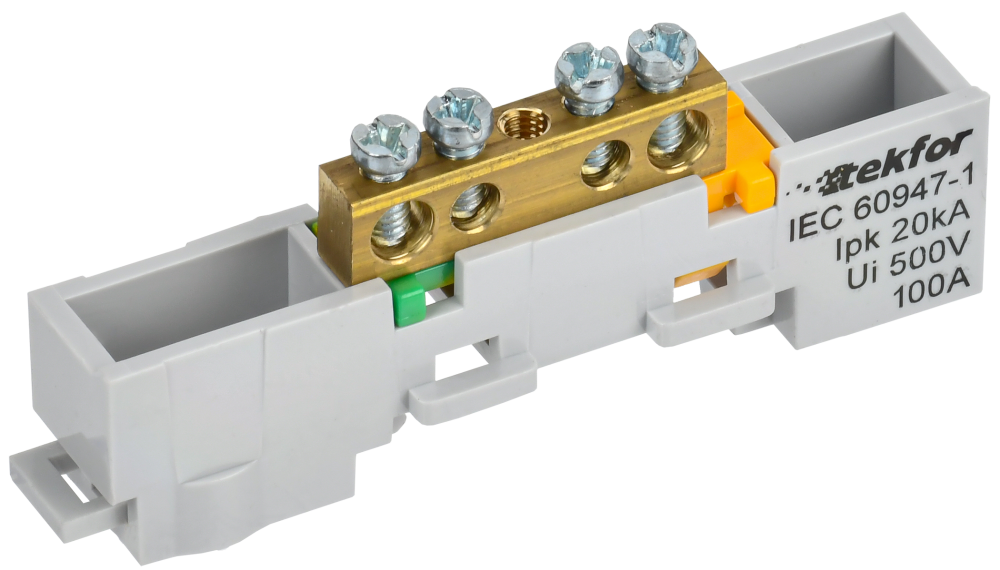 - Преимущества: Удобная сборно-разборная конструкция|Универсальный держатель шины с вариантами установки как на DIN-рейку, так и на плоскую поверхность|Индикация назначения шины выполнена цветной вставкой