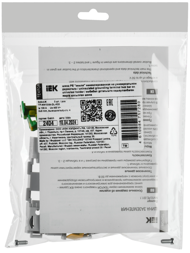 Полное описание товара TEKFOR Шина PE земля неизолированная на универсальном держателе 6х9-4-Ж IEK (IEK) TF-NN10-04-DL-K05