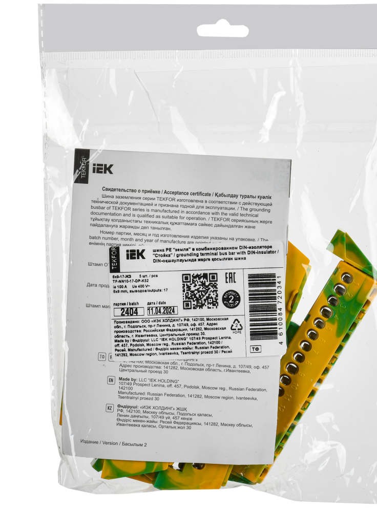 Полное описание товара TEKFOR Шина PE земля в комбинированном DIN-изоляторе Стойка 6х9-17-ЖЗ IEK (IEK) TF-NN10-17-DP-K52