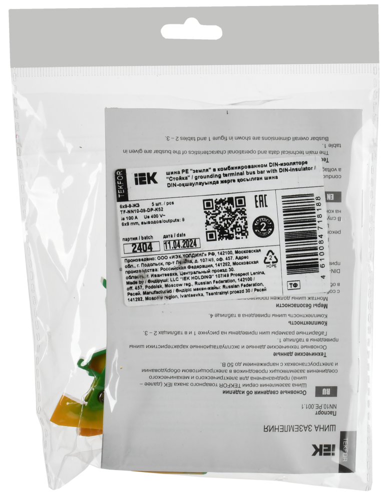 TEKFOR Шина PE земля в комбинированном DIN-изоляторе Стойка 6х9-9-ЖЗ IEK (IEK) TF-NN10-09-DP-K52