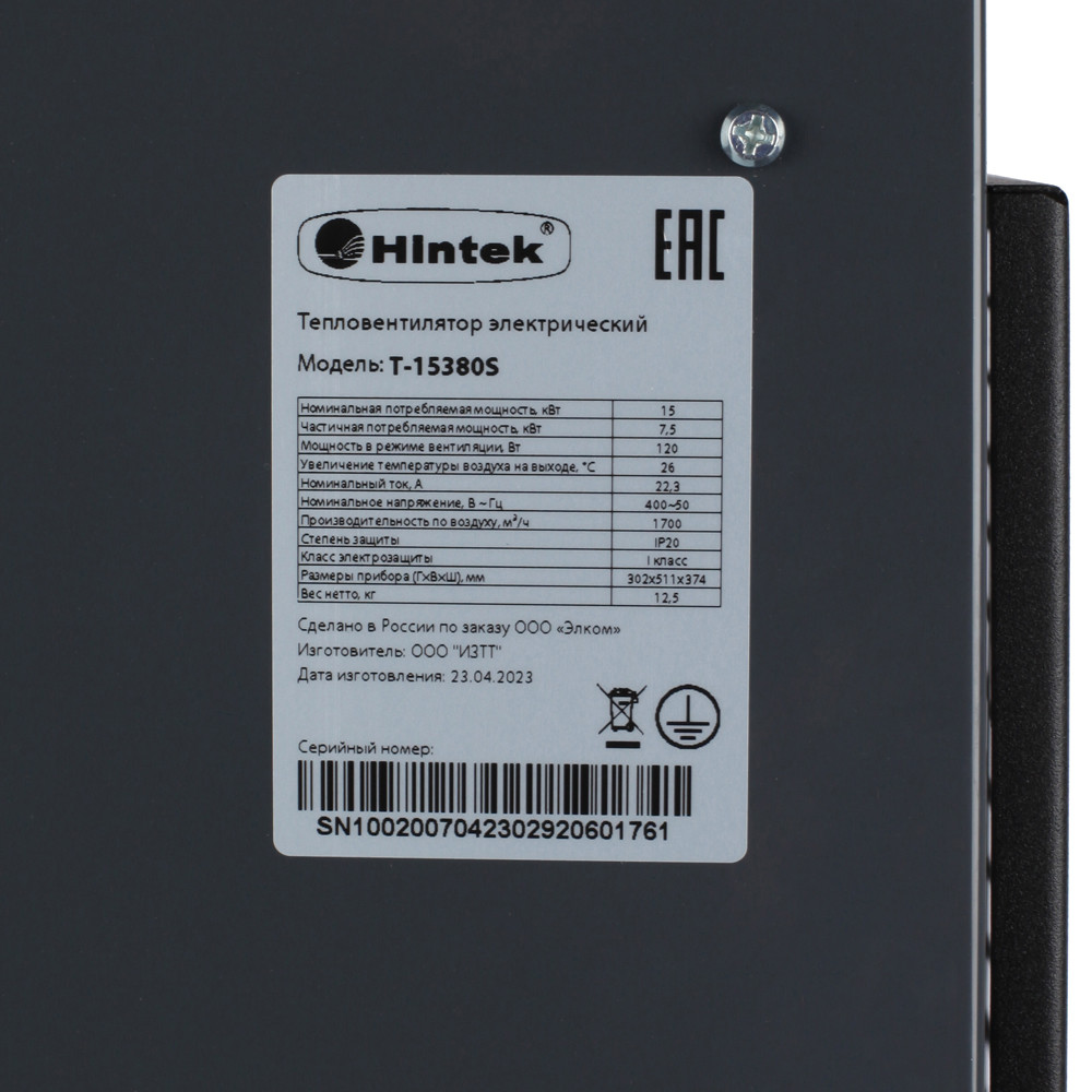 Полное описание товара Тепловентилятор электрический на 15 кВт Т-15380 (Hintek) 04.01.01.000137