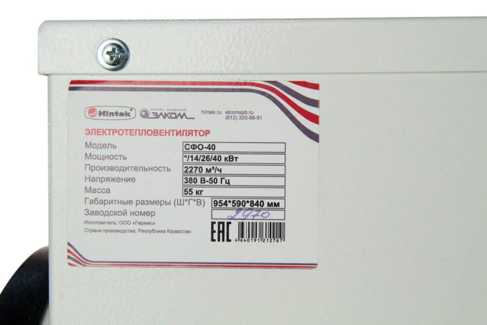Полное описание товара Тепловентилятор электрический на 40кВт СФО-40 (Hintek) 04.01.01.000129