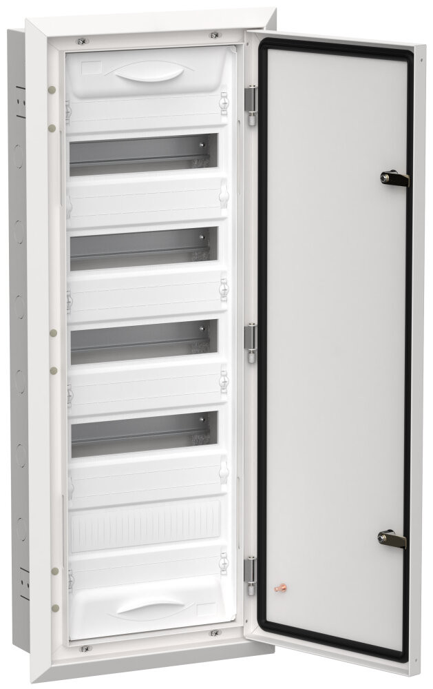 - Преимущества: Широкий размерный ряд|Модульная ёмкость от 12 до 252 модулей|Удобный монтаж: отсутствие перегородки между секциями корпуса, съемная монтажная рама|Увеличенное пространство за DIN-рейками для прокладки кабеля|Возможность пломбировки фальш-панели|Перенавешиваемая дверь|Возможность установки шин сверху и снизу|Полная комплектация|Стильный дизайн