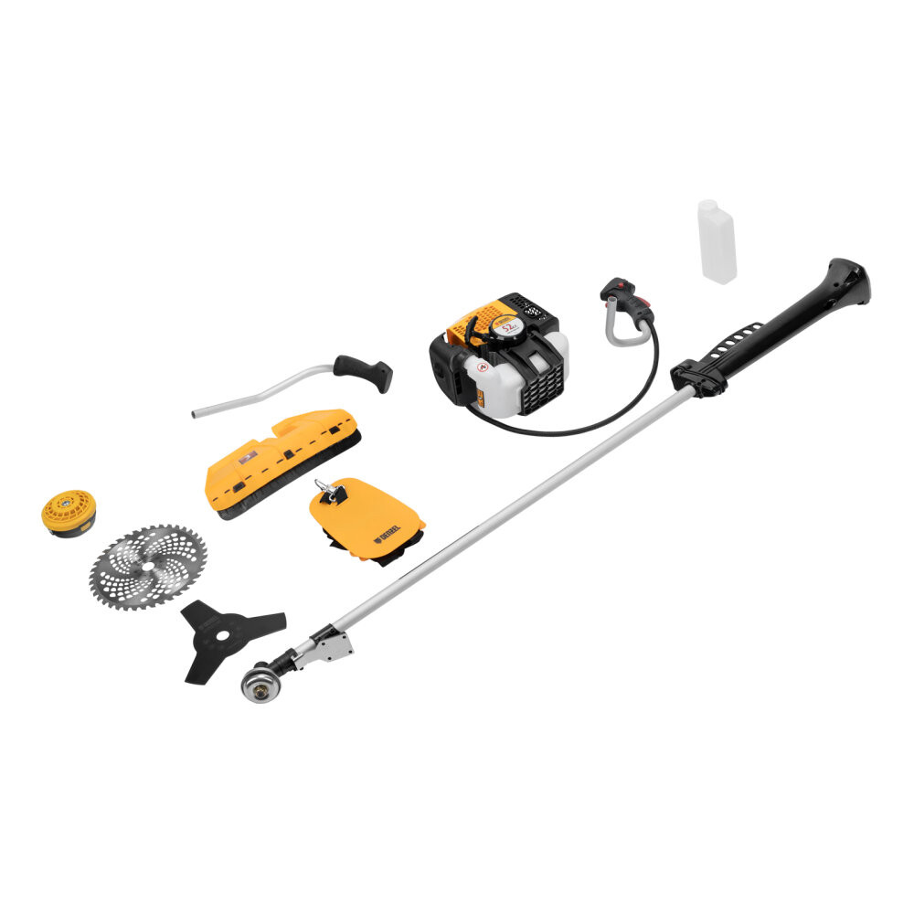 - Комплектация: Триммер бензиновый-1 шт.|Катушка-1 шт.|Нож трехлопастной 3Т-1 шт.|Пильный диск 40Т-1 шт.|Двухплечевая подвесная система с защитой бедра-1 шт.|Дозатор для приготовления смеси-1 шт.|Набор крепежа-1 шт.|Набор инструментов-1 шт.|Руководство по эксплуатации с гарантийным талоном-1 шт